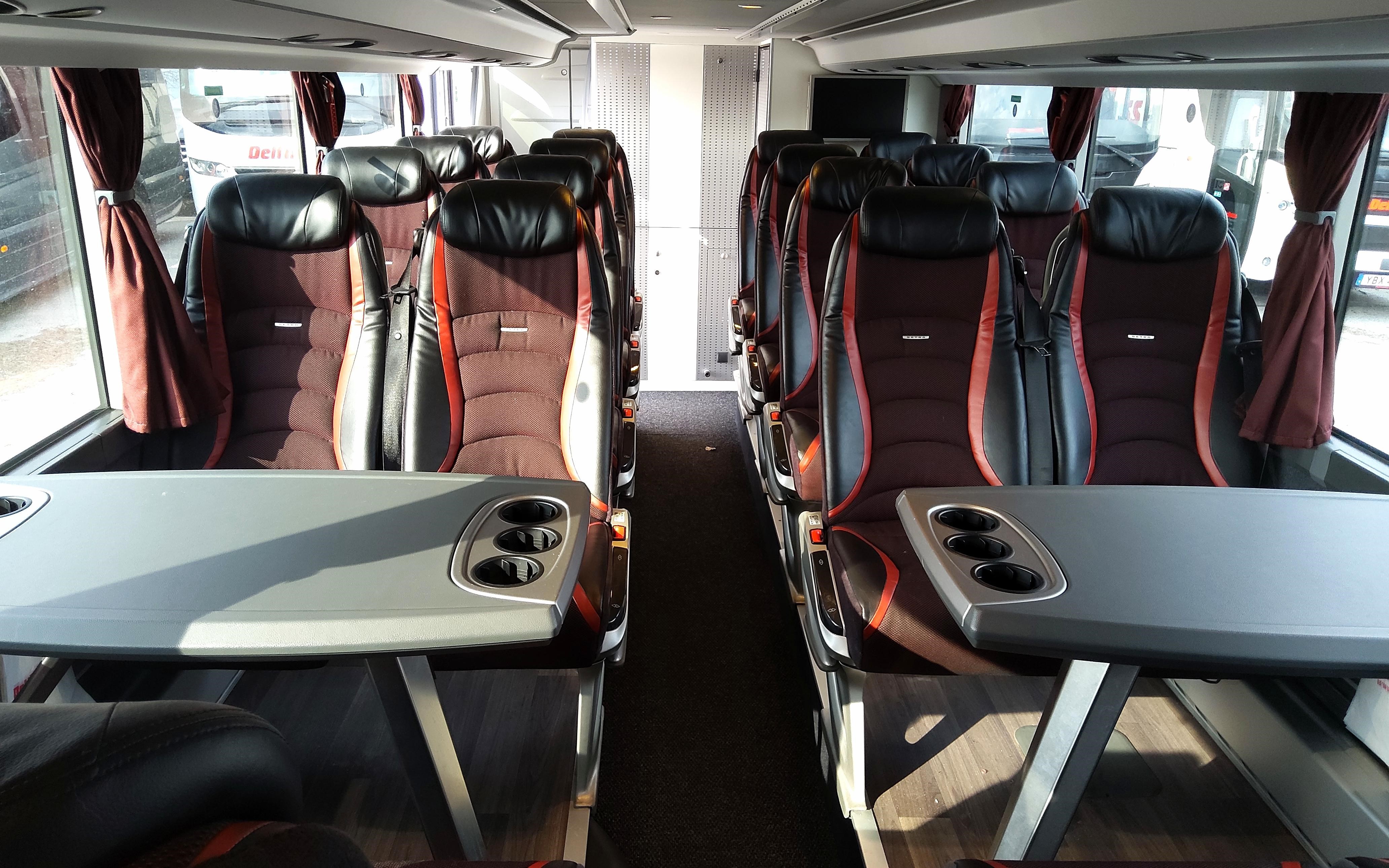 Våra dubbeldäckare har bord och det finns möjlighet att bygga om, dvs. lägga till samt ta bort bord om det önskas!